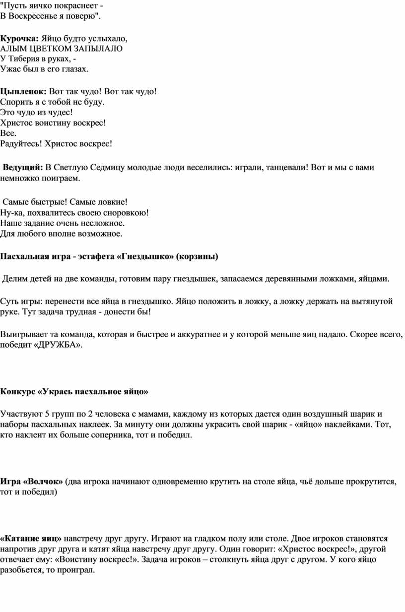 Ведущий: В Светлую Седмицу молодые люди веселились: играли, танцевали! Вот и мы с вами немножко поиграем.