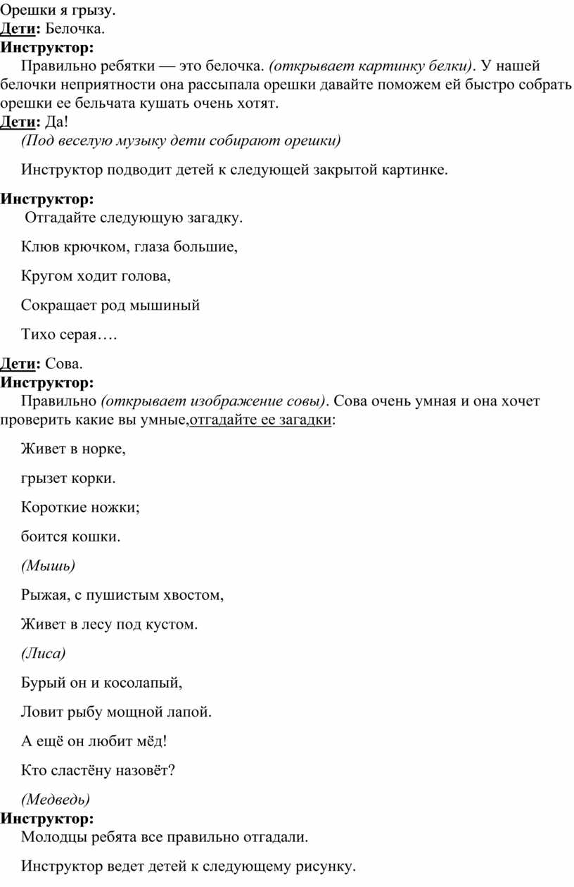 Кому мы собирали орешки? (Белка) – дети подходят к последней картинке у выхода из зала.