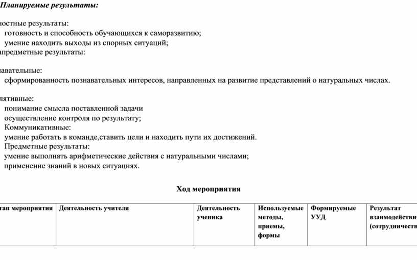 · умение выполнять арифметические действия с натуральными числами;
