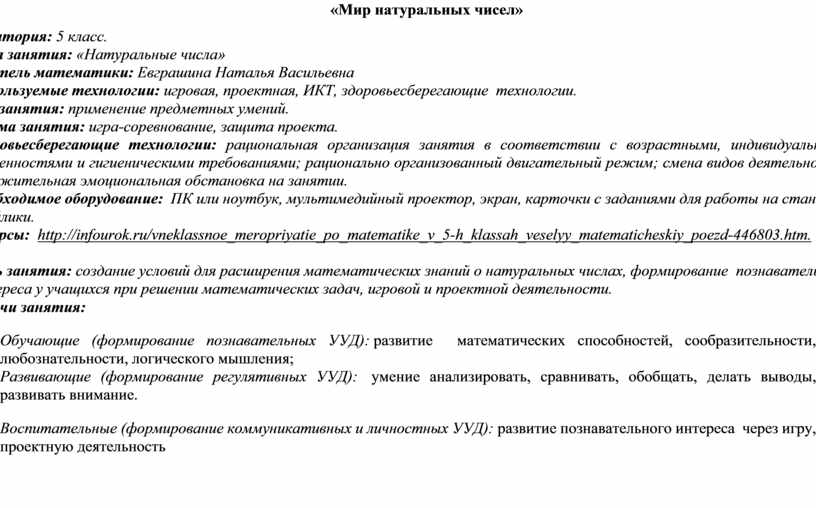 Цель занятия: создание условий для расширения математических знаний о натуральных числах, формирование познавательного интереса у учащихся при решении математических задач, игровой и проектной деятельности.