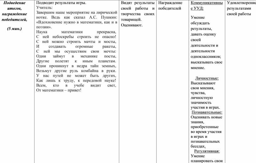 Коммуникативные УУД: Формирование навыков адекватно использовать речевые средства для решения различных коммуникативных задач; владеть устной речью; строить монологическое контекстное высказывание; умение договариваться в выборе ведущего; Регулятивная: Планирование действий в соответствии с правилами мероприятия.