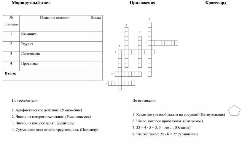 Маршрутный лист Приложения Кроссворд