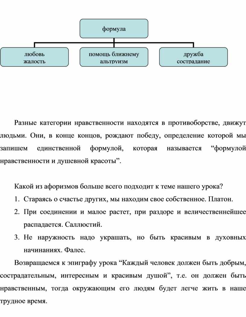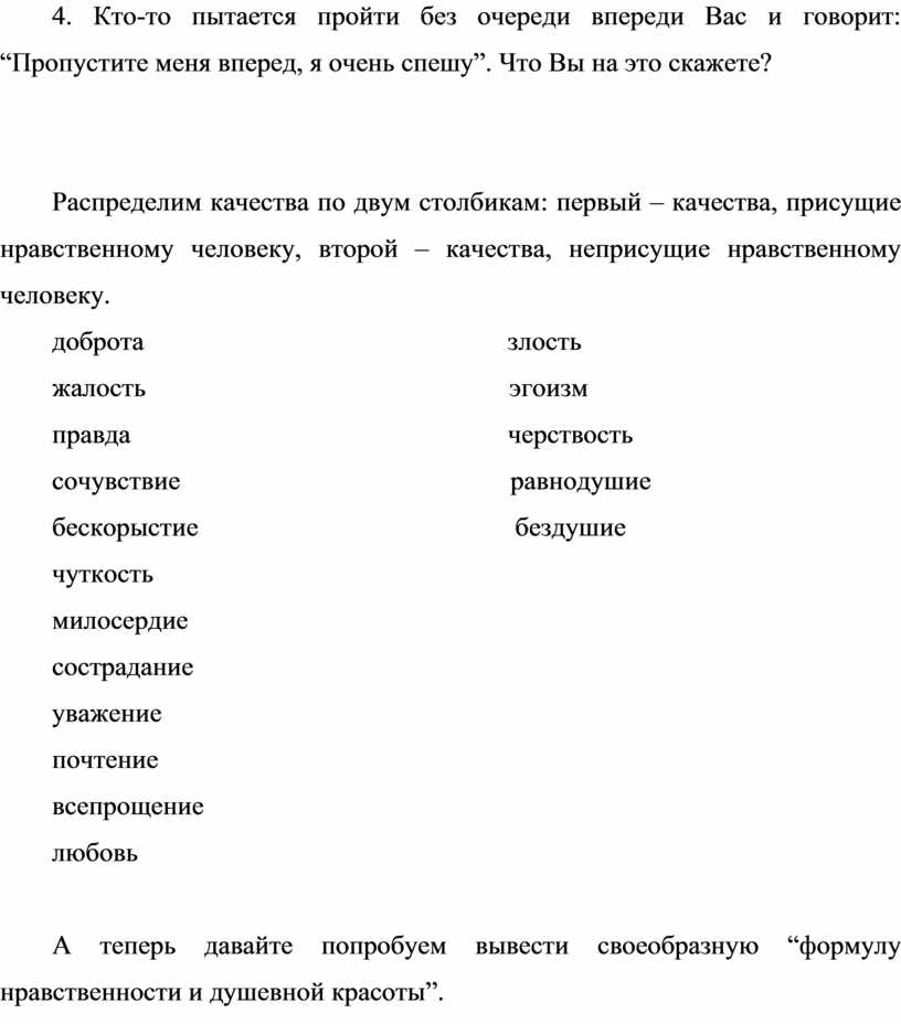 А теперь давайте попробуем вывести своеобразную “формулу нравственности и душевной красоты”.