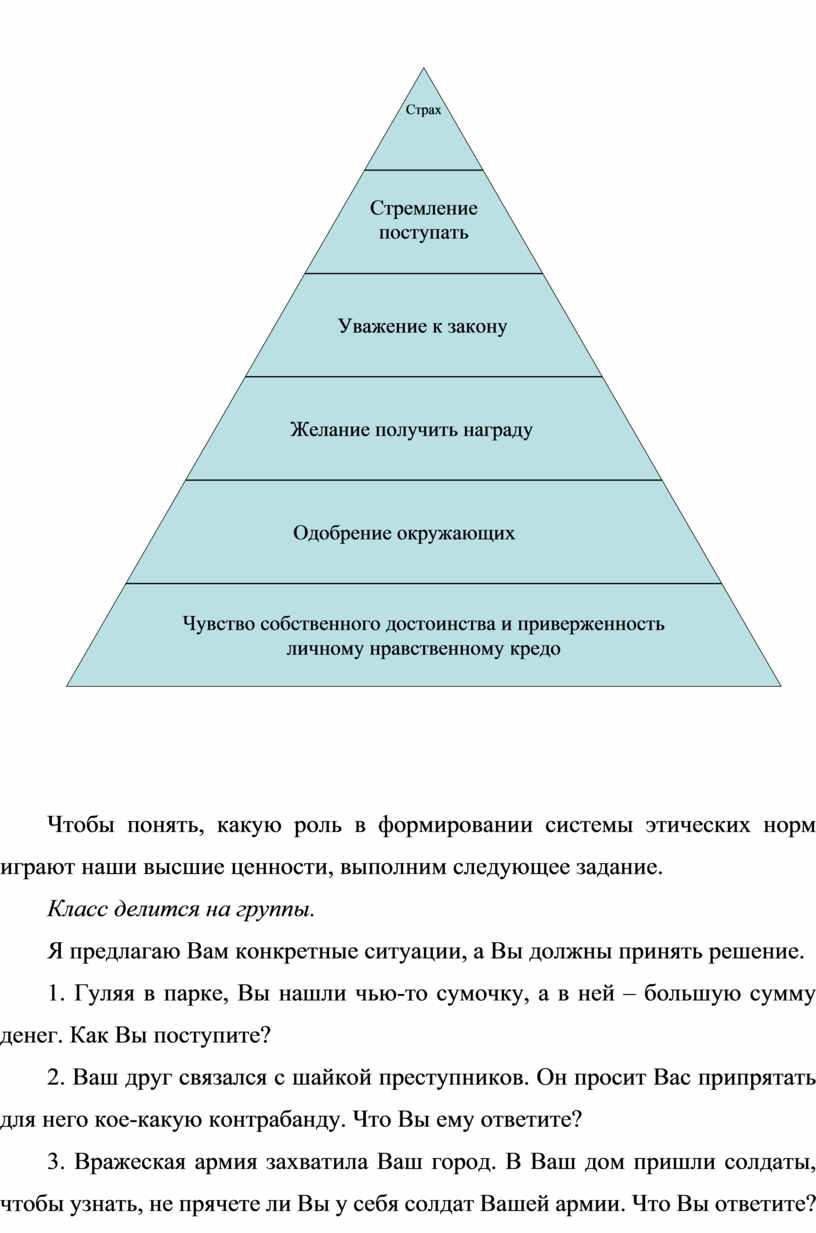 Чтобы понять, какую роль в формировании системы этических норм играют наши высшие ценности, выполним следующее задание.