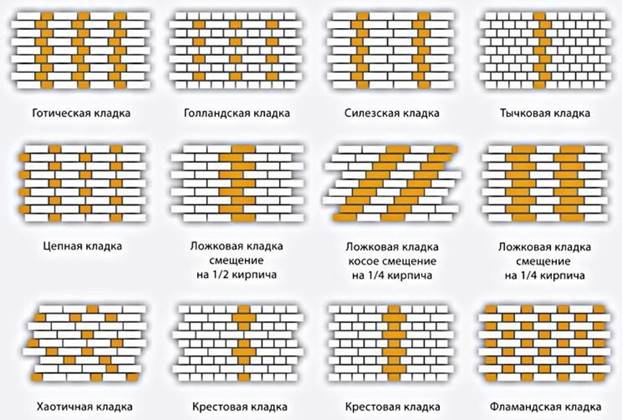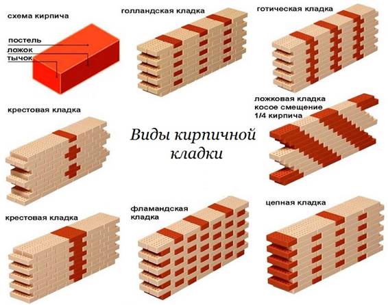По конструктивным и технологическим особенностям кирпичную кладку разделяют на следующие виды: