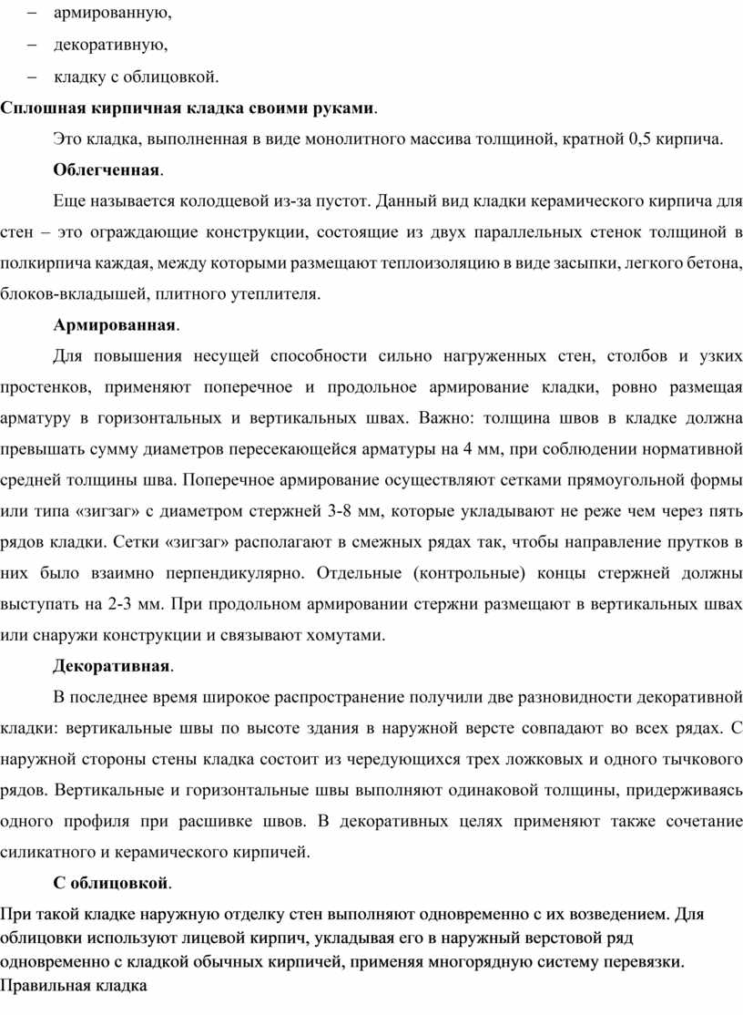 На тему: «В зависимости от видов кладки определить ее применение при возведении каменных конструкций»