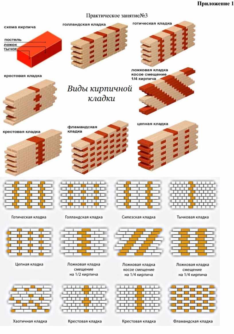 Дидактическая цель: изучить виды кирпичной кладки из кирпича