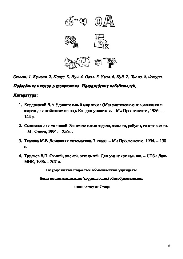 4. Труднев В.П. Считай, смекай, отгадывай: Для учащихся нач. шк. – СПб.: Лань