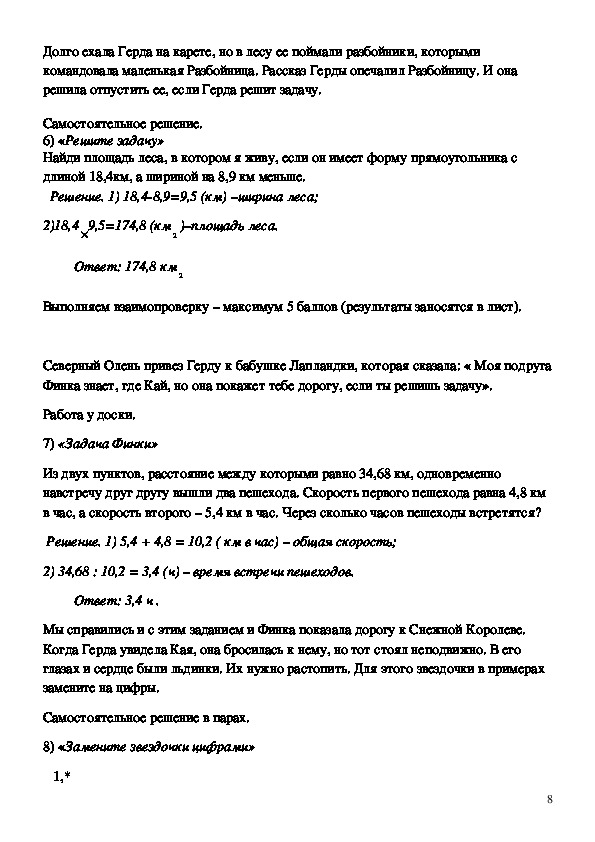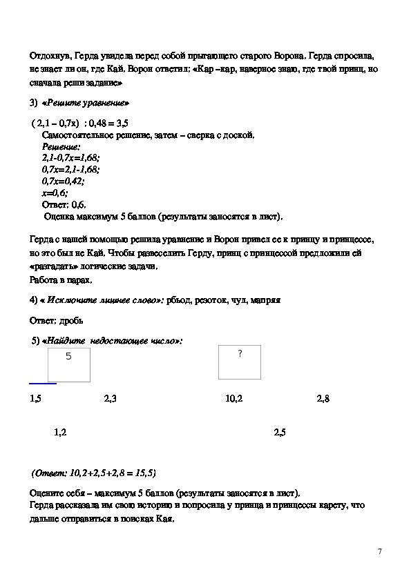 Герда с нашей помощью решила уравнение и Ворон привел ее к принцу и принцессе,