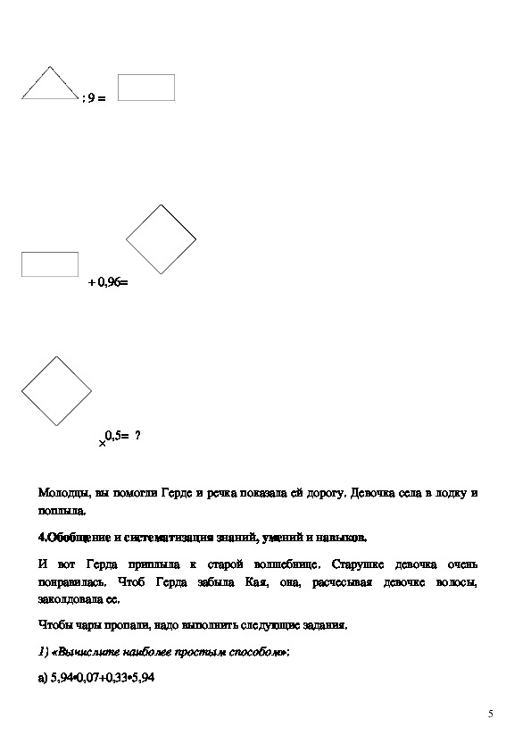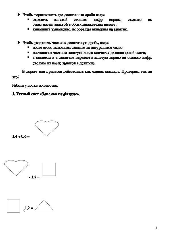 сложения, вычитания, умножения и деления десятичных дробей при решении