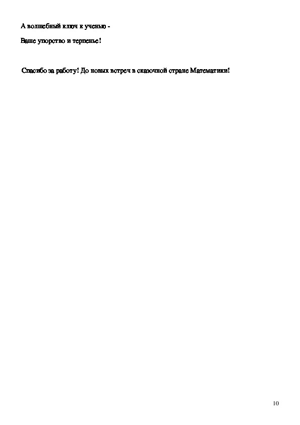 Спасибо за работу! До новых встреч в сказочной стране Математики!