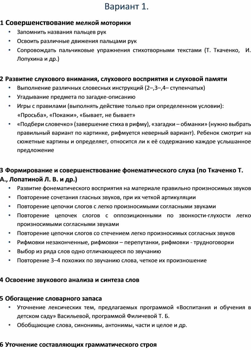Варианты индивидуальных планов логопедических