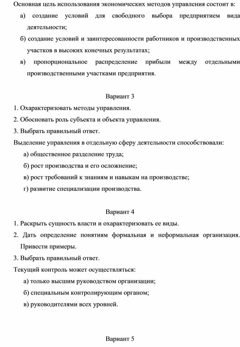 Варианты итоговой контрольной работы учебной дисциплины МЕНЕДЖМЕНТ