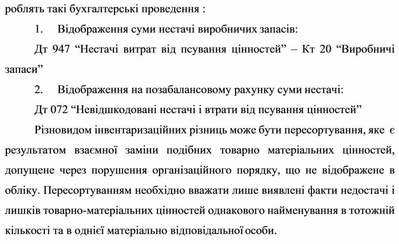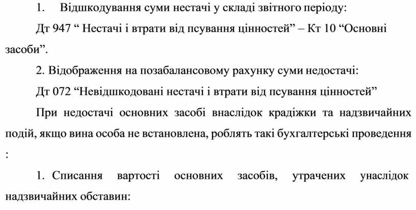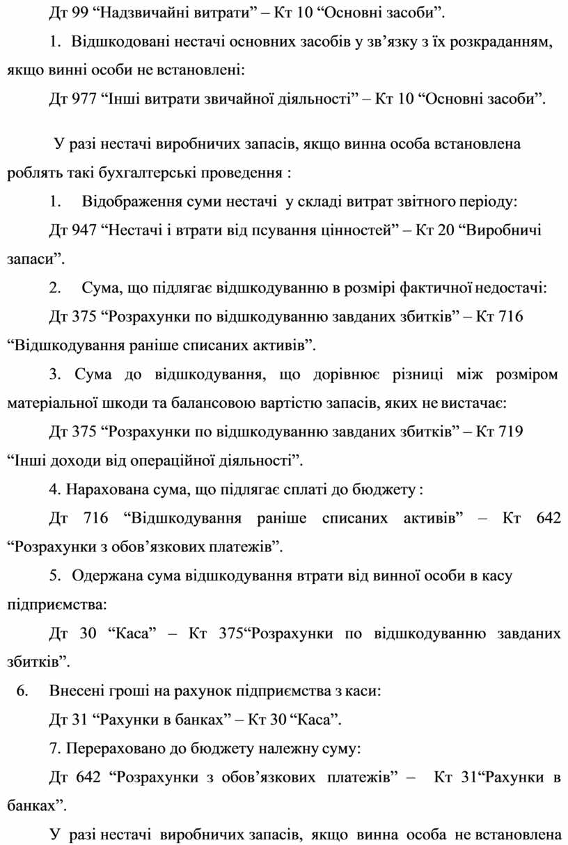 1. Відображення суми нестачі у складі витрат звітного періоду: