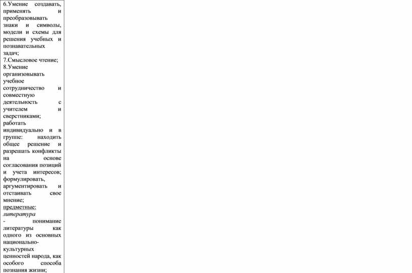 После завершения проекта учащиеся приобретут следующие умения: личностные: 1.Сформированность российской гражданской идентичности, любви к Отечеству и уважения к своему народу, чувства ответственности перед Родиной, гордости за свой край, свою Родину, прошлое и настоящее многонационального народа России, уверенности в его великом будущем; 2.Сформированность основ саморазвития и самовоспитания на основе общечеловеческих нравственных ценностей и идеалов российского гражданского общества; 3.Сформированность нравственного сознания и поведения на основе усвоения общечеловеческих ценностей. 4.Формирование целостного мировоззрения, соответствующего современному уровню развития науки и общественной практики, учитывающего социальное, культурное, языковое, духовное многообразие современного мира; 5.Формирование осознанного, уважительного и доброжелательного отношения к другому человеку, его мнению, мировоззрению, культуре, языку, вере, гражданской позиции, к истории, культуре, религии, традициям, языкам, ценностям народов России и народов мира; готовности и способности вести диалог с другими людьми и достигать в нем взаимопонимания; 6.Формирование коммуникативной компетентности в общении и сотрудничестве со сверстниками, детьми старшего и младшего возраста, взрослыми в процессе образовательной, общественно полезной, учебно-исследовательской, творческой и других видов деятельности; метапредметные 1.Владение навыками познавательной, учебно-исследовательской и проектной деятельности, навыками разрешения проблем; 2.Готовность и способность к самостоятельной и ответственной информационной деятельности, включая умение ориентироваться в различных источниках информации, критически оценивать и интерпретировать информацию, получаемую из различных источников; 3.Умение оценивать правильность выполнения учебной задачи, собственные возможности ее решения; 4.Владение основами самоконтроля, самооценки, принятия решений и осуществления осознанного выбора в учебной и познавательной деятельности; 5.Умение определять понятия, создавать обобщения, устанавливать аналогии, классифицировать, самостоятельно выбирать основания и критерии для классификации, устанавливать причинно-следственные связи, строить логическое рассуждение, умозаключение (индуктивное, дедуктивное и по аналогии) и делать выводы; 6.Умение создавать, применять и преобразовывать знаки и символы, модели и схемы для решения учебных и познавательных задач; 7.Смысловое чтение; 8.Умение организовывать учебное сотрудничество и совместную деятельность с учителем и сверстниками; работать индивидуально и в группе: находить общее решение и разрешать конфликты на основе согласования позиций и учета интересов; формулировать, аргументировать и отстаивать свое мнение; предметные: литература - понимание литературы как одного из основных национально-культурных ценностей народа, как особого способа познания жизни; - обеспечение культурной самоиндентификации, осознание коммуникативно- эстетических возможностей родного языка на основе изучения выдающихся произведений российской культуры, культуры своего народа; - умение воспринимать, анализировать, критически оценивать и интерпретировать прочитанное. искусство - интерес и уважительное отношение к культурному на