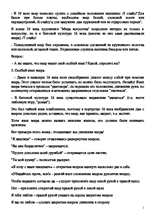 веера. Этот диалог нельзя было услышать, но можно было подглядеть. /9слайд/ Язык
