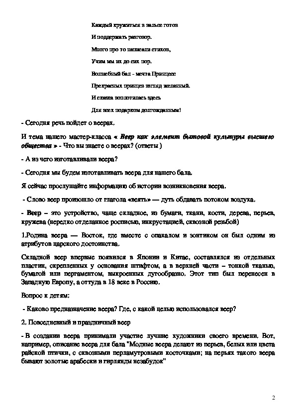 И тема нашего мастеркласса « Веер как элемент бытовой культуры высшего