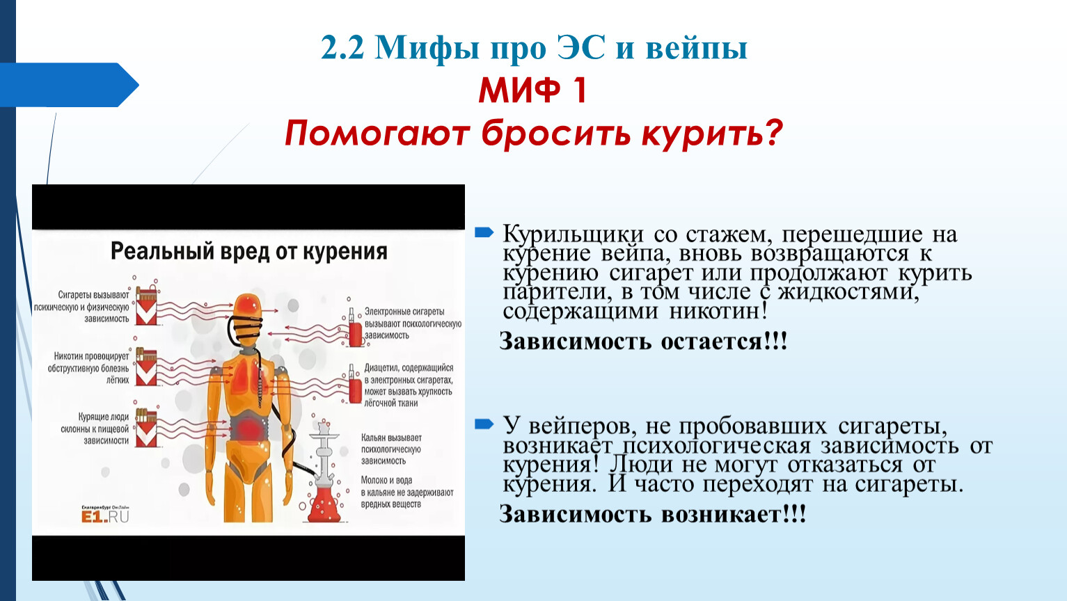 2.2 Мифы про ЭС и вейпы МИФ 1 Помогают бросить курить?
