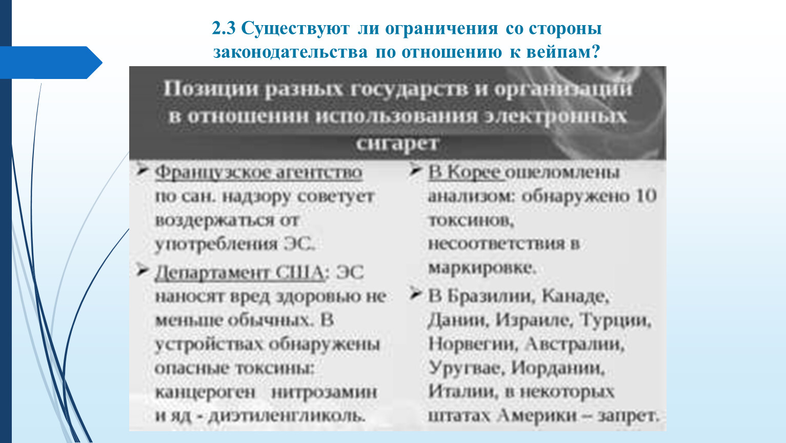 2.3 Существуют ли ограничения со стороны законодательства по отношению к вейпам?