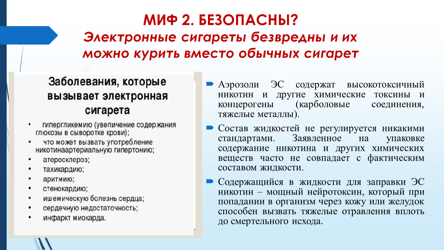 МИФ 2. БЕЗОПАСНЫ? Электронные сигареты безвредны и их можно курить вместо обычных сигарет