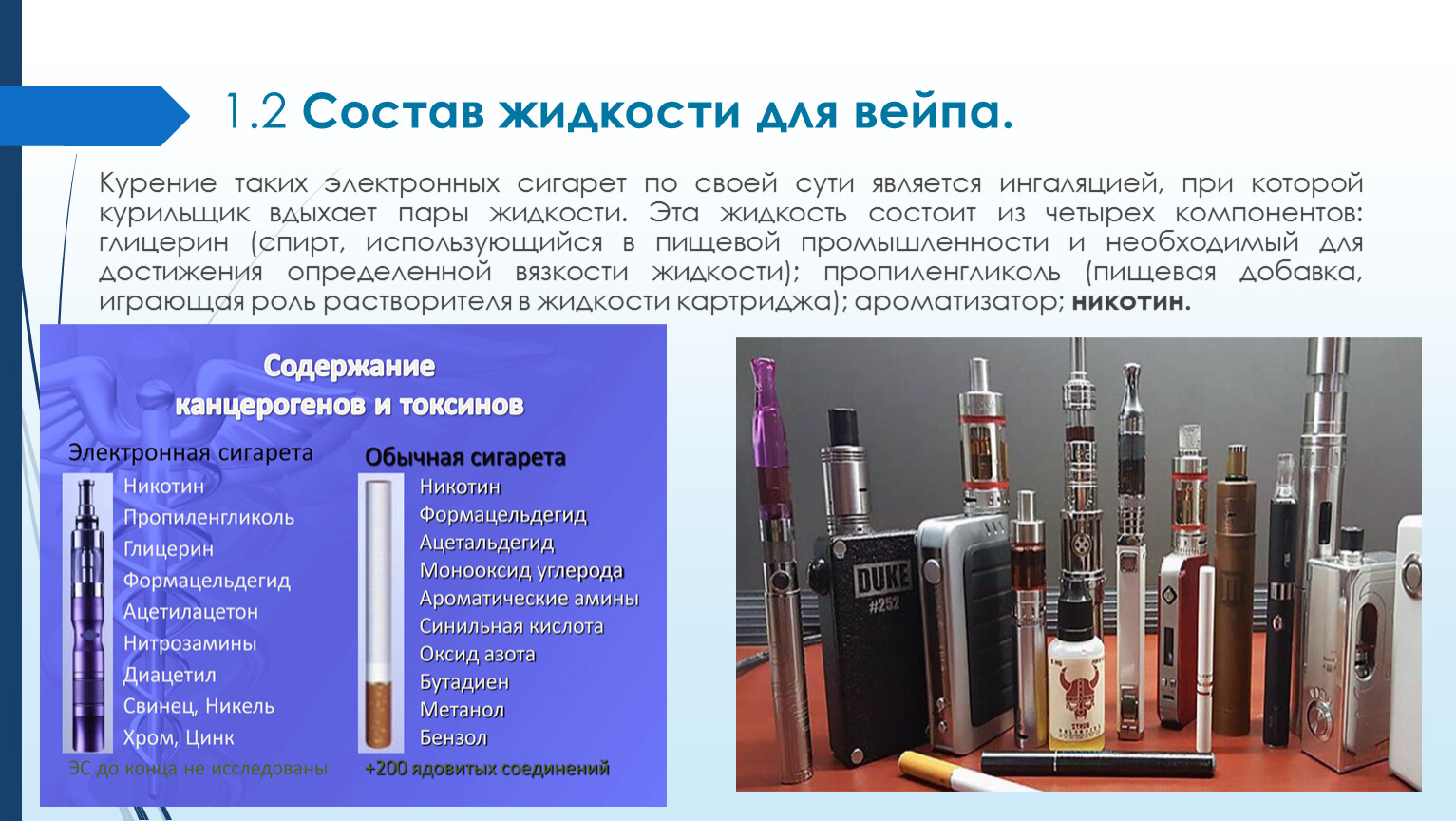 Узнать состав жидкости для вейпа и какой вред организму она наносит.