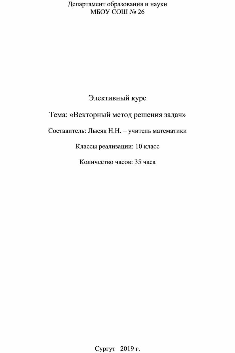 В основу данного элективного курса положено учебное пособие «Векторные методы решения задач», И.Кушнир, Москва «Просвещение» 2011 г.