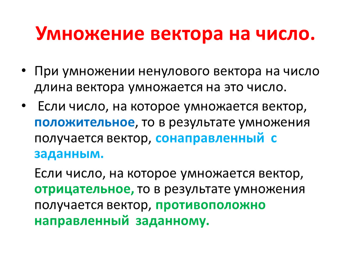 Если число, на которое умножается вектор, положительное, то в результате умножения получается вектор, сонаправленный с заданным.