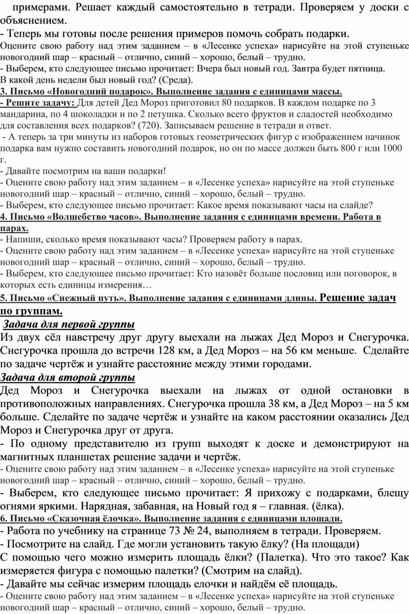 5. Письмо «Снежный путь». Выполнение задания с единицами длины. Решение задач по группам.