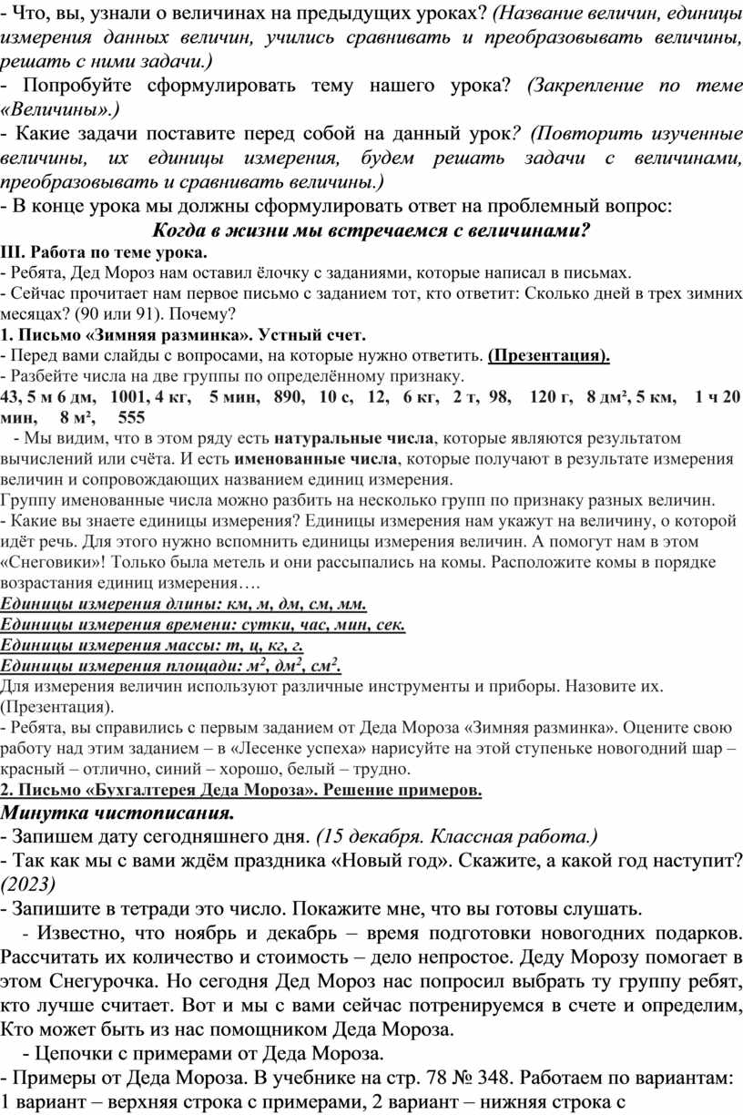 по теме «Закрепление. Величины»,
