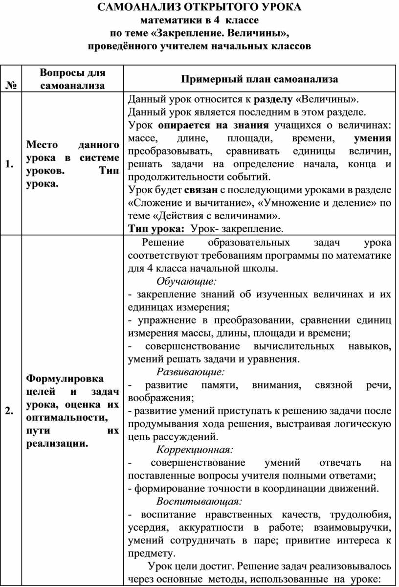 САМОАНАЛИЗ ОТКРЫТОГО УРОКА