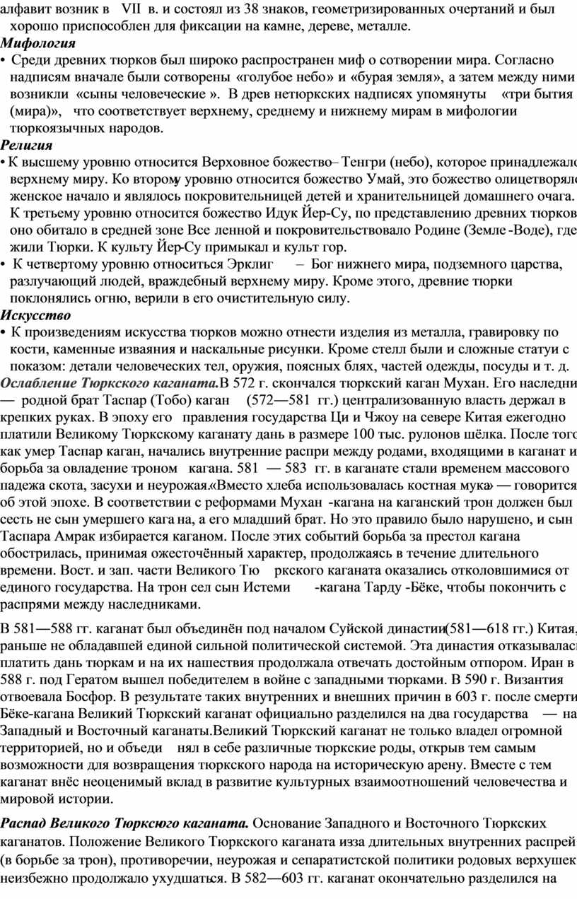 Распад Великого Тюркского каганата. Основание Западного и Восточного Тюркских каганатов. Положение Великого Тюркского каганата из-за длительных внутренних распрей (в борьбе за трон), противоречии, неурожая и сепаратистской политики родовых верхушек неизбежно продолжало ухудшаться. В 582―603 гг. каганат окончательно разделился на Западный и Восточный каганаты, и у каждого из них были свои территориальные владения.