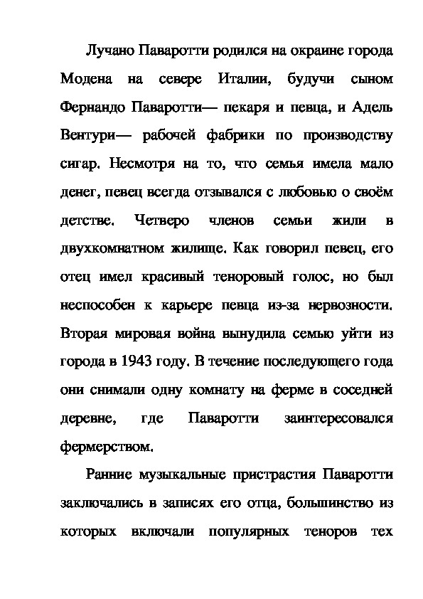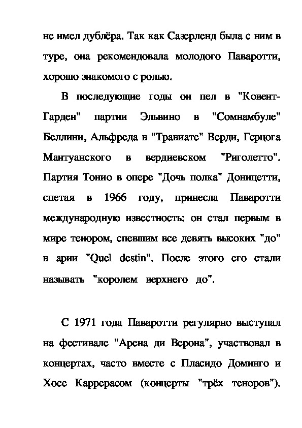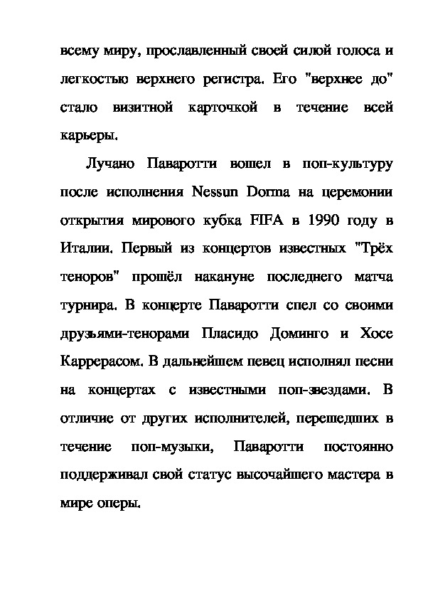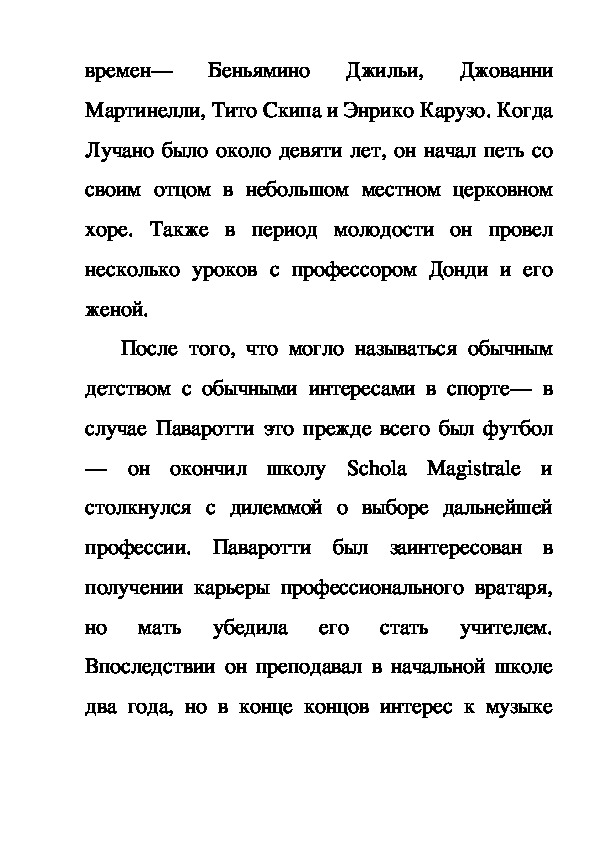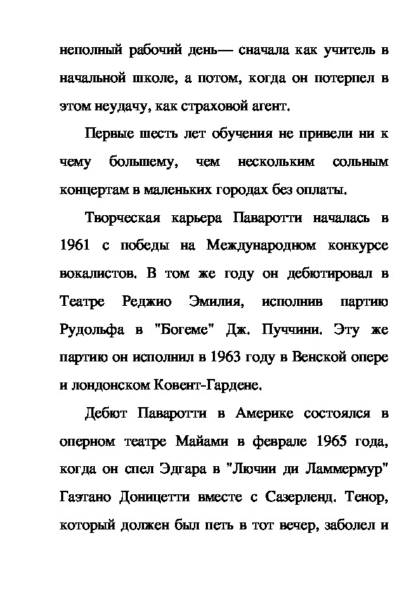 профессии. Паваротти был заинтересован в