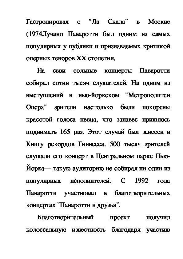 Паваротти участвовал в благотворительных