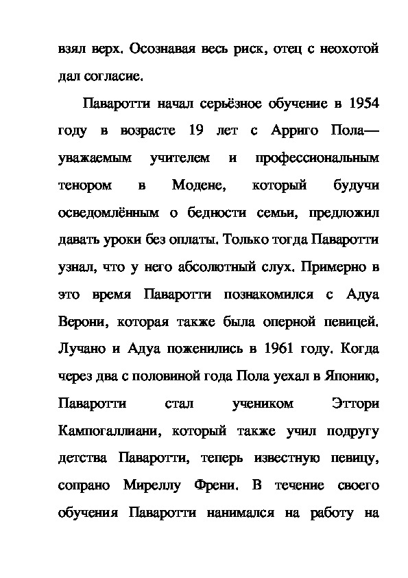 обучения Паваротти нанимался на работу нанеполный рабочий день— сначала как учитель в
