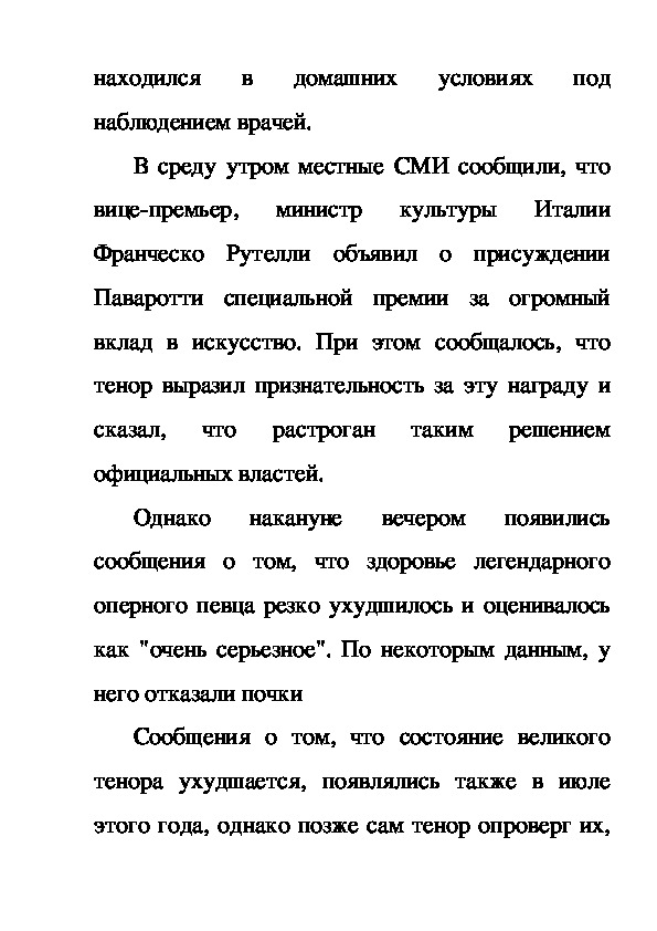 быть отпущен домой. После этого Павароттинаходился в домашних условиях под