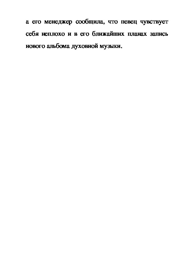 этого года, однако позже сам тенор опроверг их,а его менеджер сообщила, что певец чувствует