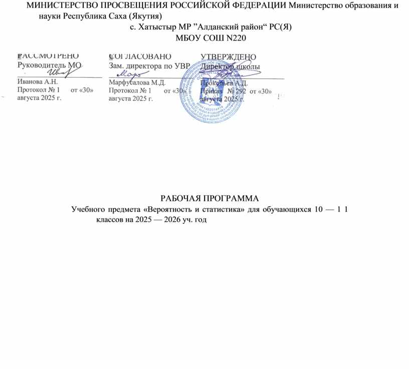 Учебного предмета «Вероятность и статистика» для обучающихся 10 — 1 1 классов на 2025 — 2026 уч. год
