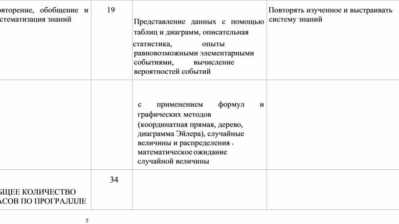 Представление данных с помощью таблиц и диаграмм, описательная статистика, опыты равновозможными элементарными событиями, вычисление вероятностей событий |