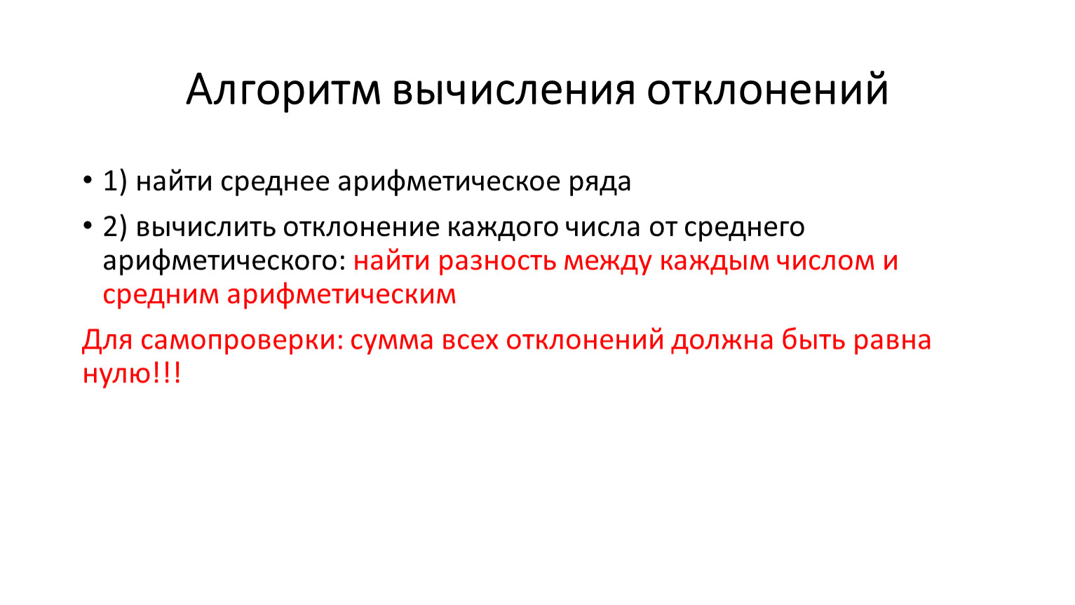Для самопроверки: сумма всех отклонений должна быть равна нулю!!!