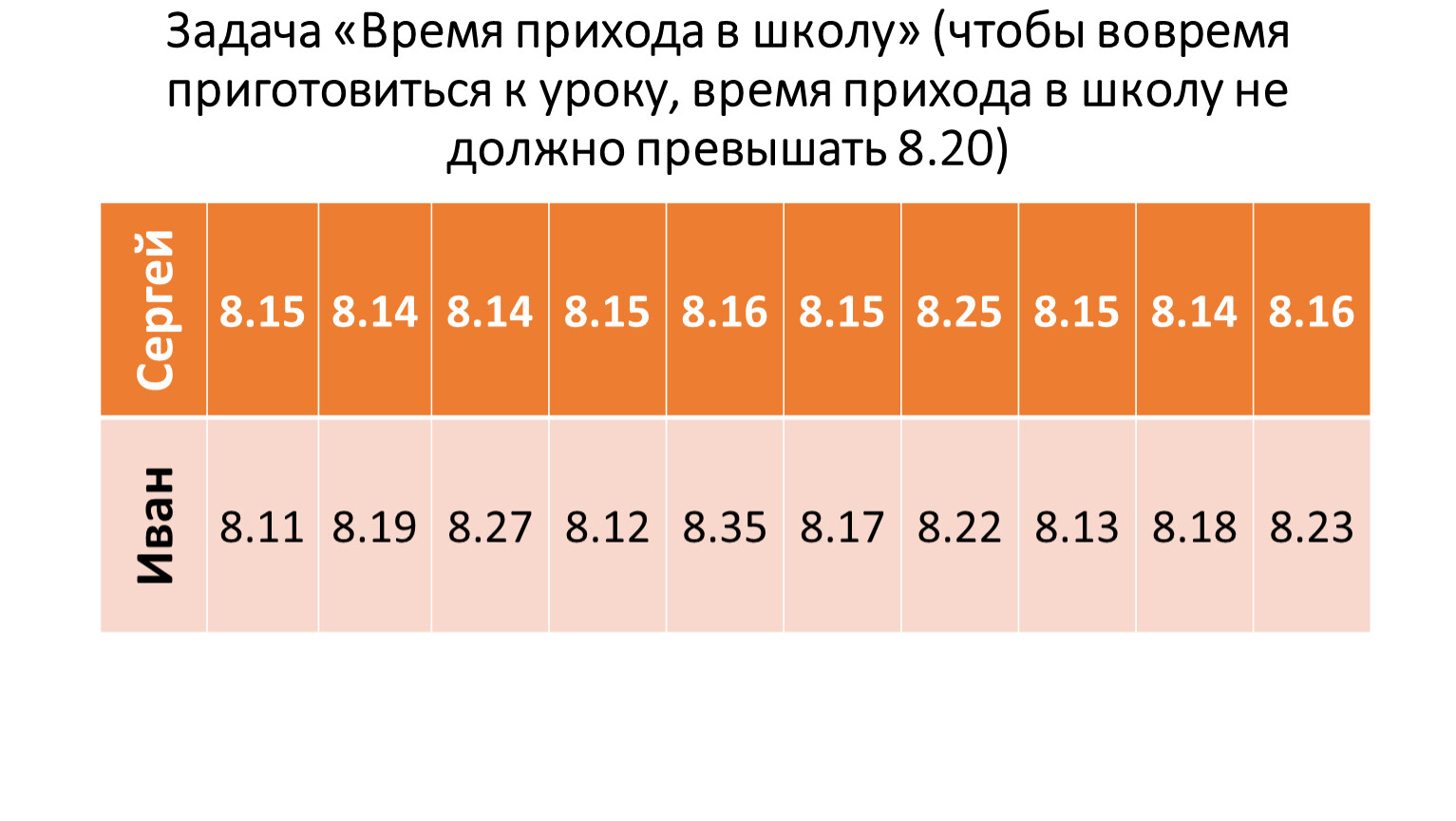 Задача «Время прихода в школу» (чтобы вовремя приготовиться к уроку, время прихода в школу не должно превышать 8.20)
