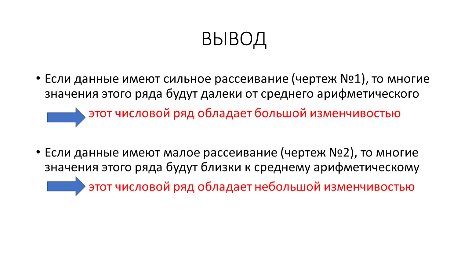 Если данные имеют малое рассеивание (чертеж №2), то многие значения этого ряда будут близки к среднему арифметическому