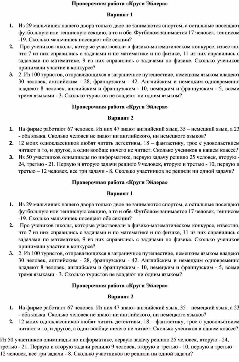 Проверочная работа «Круги Эйлера»
