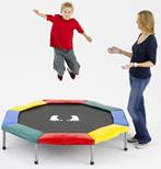 Прыгая на батуте, мальчик на мгновение завис в воздухе (см. фото). Имеет ли он в этот момент вес? |