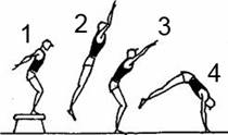 На рисунке показаны фазы прыжка гимнаста при переходе в кувырок. В каких фазах тело гимнаста имеет вес? |