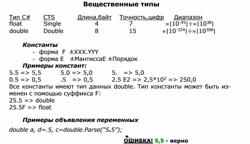 Вещественные типы