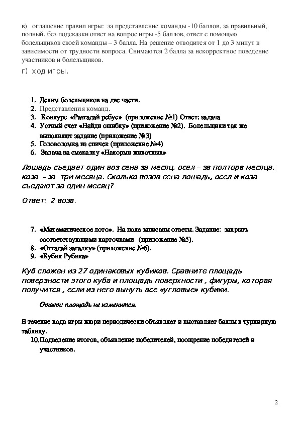 б) представление жюри;в) оглашение правил игры: за представление команды 10 баллов, за правильный,