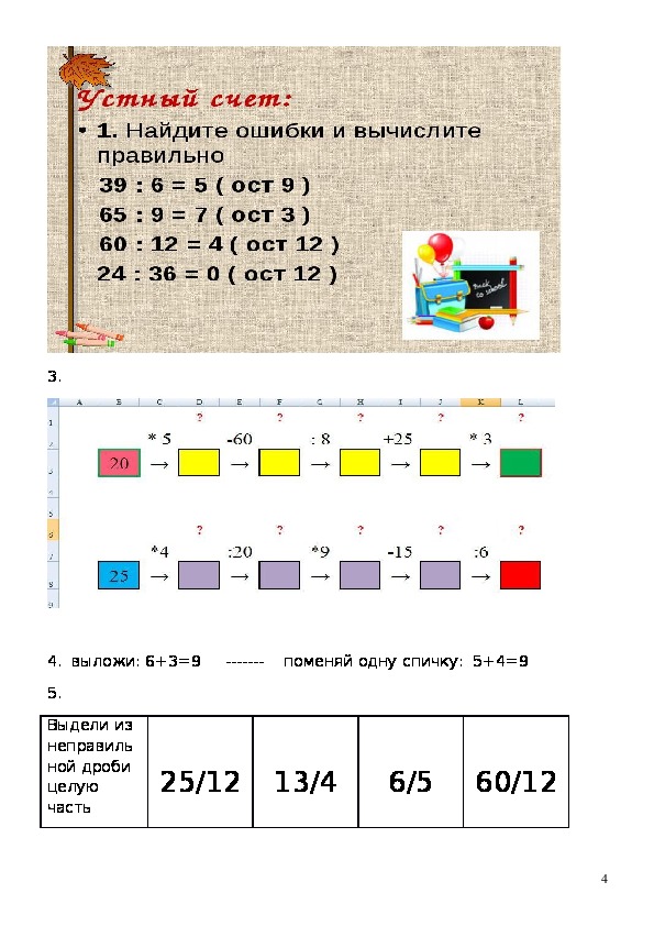 4. Устный счет «Найди ошибку» (приложение №2). Болельщики так же