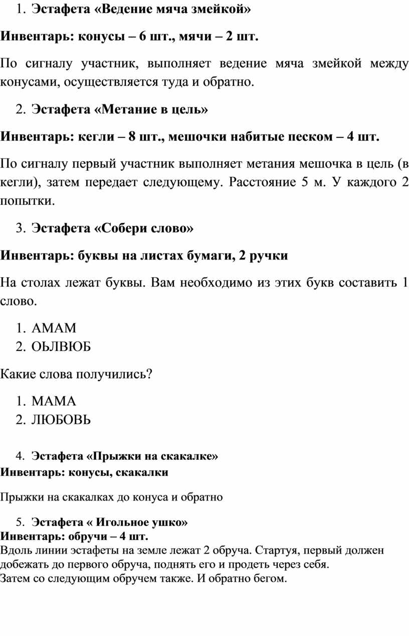 Инвентарь: кегли – 8 шт., мешочки набитые песком – 4 шт.