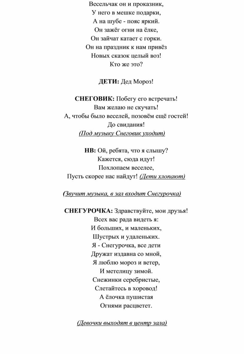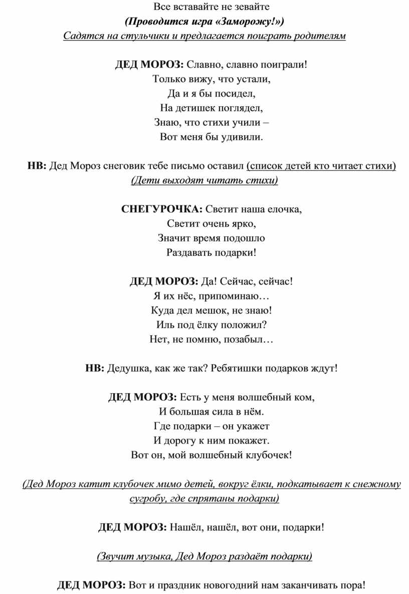 НВ: Дед Мороз снеговик тебе письмо оставил (список детей кто читает стихи)
