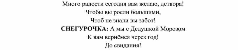 ДЕД МОРОЗ: Вот и праздник новогодний нам заканчивать пора!